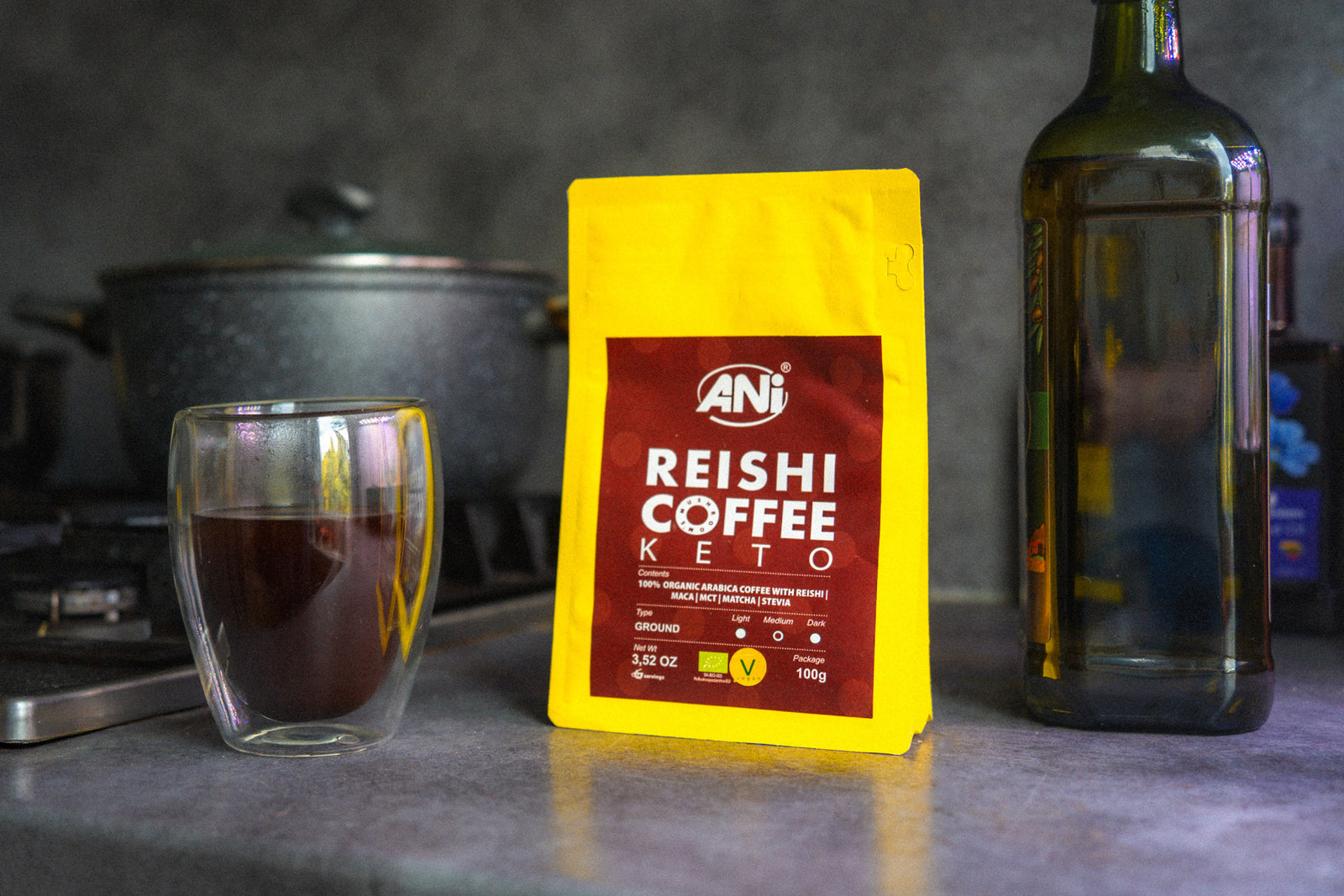 Pagaminta iš Brazilijoje užaugintų Arabica kavos pupelių ir aukštos kokybės Lion’s Mane, Reishi bei Cordyceps adaptogenų, funkcinė kava padeda stiprinti imunitetą, skatina smegenų veiklą ir gerą savijautą – be kavai būdingo rūgštingumo ir drebulių.
